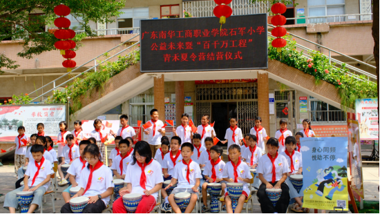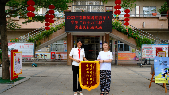 石军小学校长梁蔚菁为突击队授予锦旗,“青禾星火暖乡,童心晨曦助长”。突击队将全部课程决议及乐器等涵养器具赠予学校,并树立了线上交流平台。